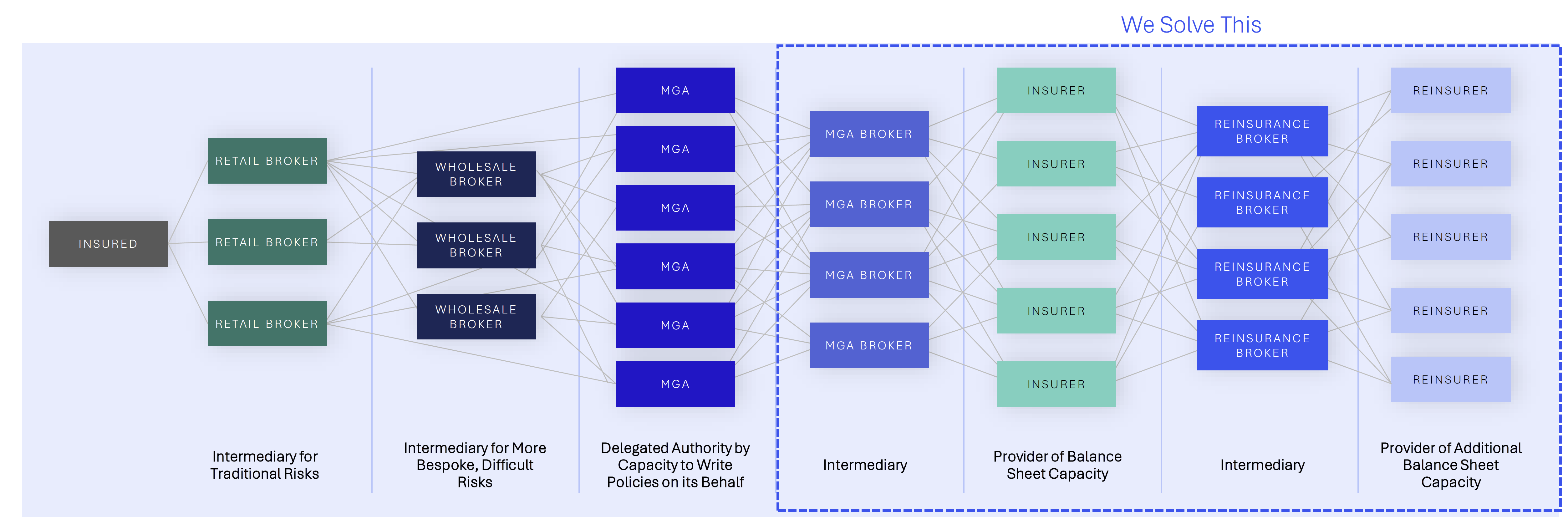 The insurance value chain is rarely straightforward. A single policy can pass through multiple hands before the risk finally settles on the balance sheet of an insurer or more often a reinsurer. In specialty lines, the path is even more complex: Risk often winds its way through retail brokers, wholesalers, MGAs, and reinsurance brokers. Each intermediary can add genuine value, given the expertise required to place nuanced and unusual risks. But this layering also creates friction — extra fees, loss of data, slower processes, and diluted transparency. To make matters worse, many traditional players still operate on outdated legacy systems, leading to poor data quality, inaccurate risk pricing, and an inability to serve certain niches effectively.