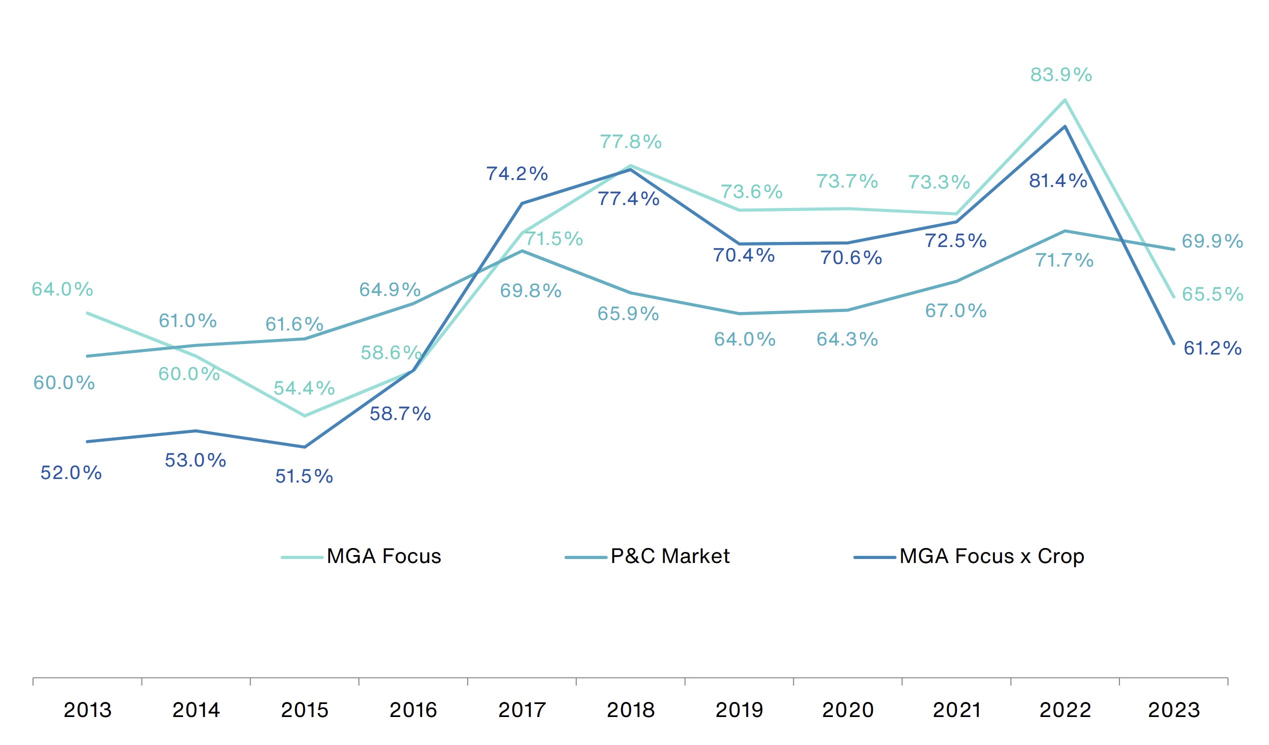 Source: Historical MGA loss ratios, Aon.