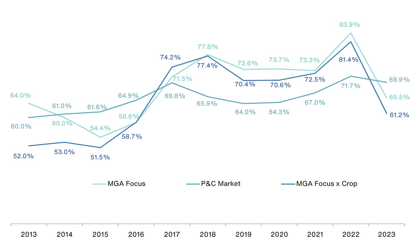Operational efficiency. Roughly 30% of each premium dollar in insurance still goes to expenses. MGAs (with some notable exceptions!) have proven they can deliver lower loss ratios and run more cost-efficiently, a critical advantage as the insurance cycle begins to soften.