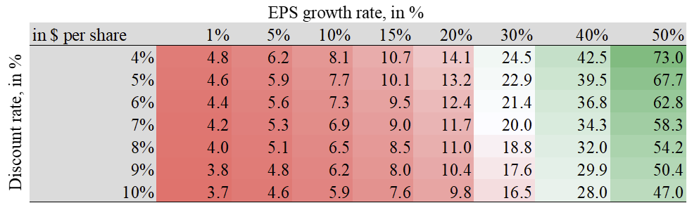 Source: My calculation assuming 10 years forward EPS growth. No terminal value.