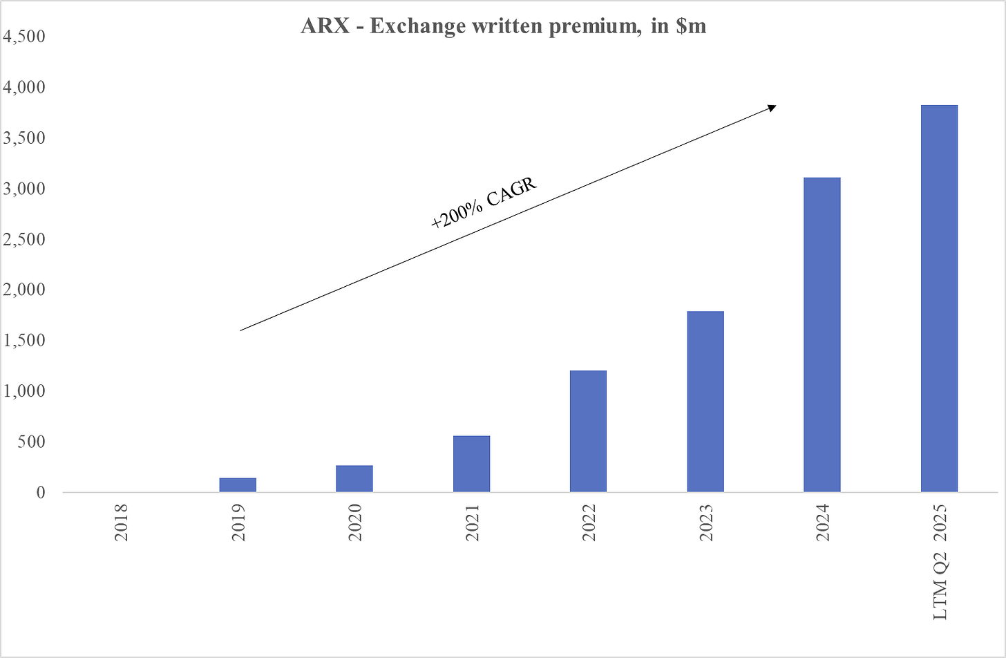 At its core, ARX is a platform for seamless risk transfer. Since inception in 2018, ARX exchange written premium have grown more than 200% per year, reaching $3.8bn in the twelve months to June 2025.