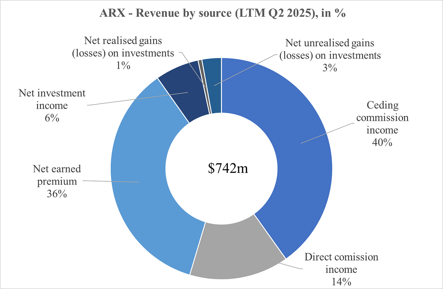 Underwriting: Ceding commissions from reinsurers plus underwriting results on the small share of risk retained by ARX’s own carriers (approx. 3% on gross earned premium). Simply put, here ARX acts as a hybrid fronting carrier.