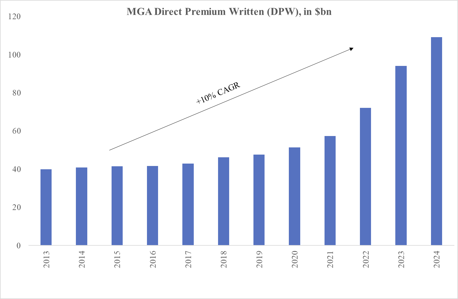 Shift toward bespoke cover. The share of the E&S market in overall P&C has tripled from ~4% in 2001 to 12% in 2023 according to AM Best, reflecting growing demand for tailored, non-standard solutions — an MGA sweet spot.